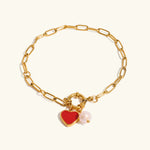 Encanta tu día. La pulsera Tanya de AVARIA aporta un toque de color y personalidad con su charm en forma de corazón y su perla lustrosa. Hipoalergénica y resistente al agua para un uso sin preocupaciones.